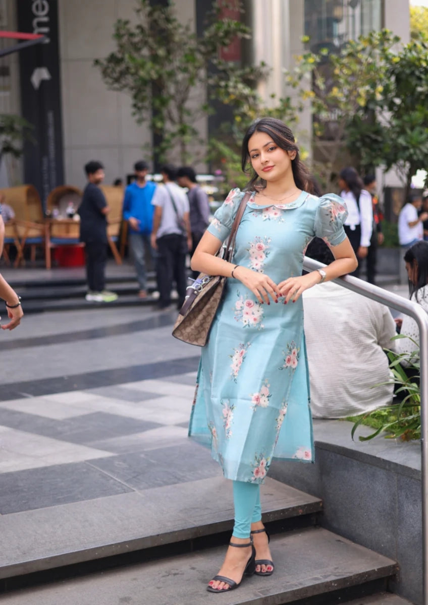 Refresh your everyday ethnic wardrobe with the Sky Bloom Floral Kurti, designed for women who love soft pastels and effortless elegance. Crafted in a soothing sky-blue shade with delicate floral prints, this kurti offers a graceful look that’s perfect for daily wear, office use, or casual outings. ✨
